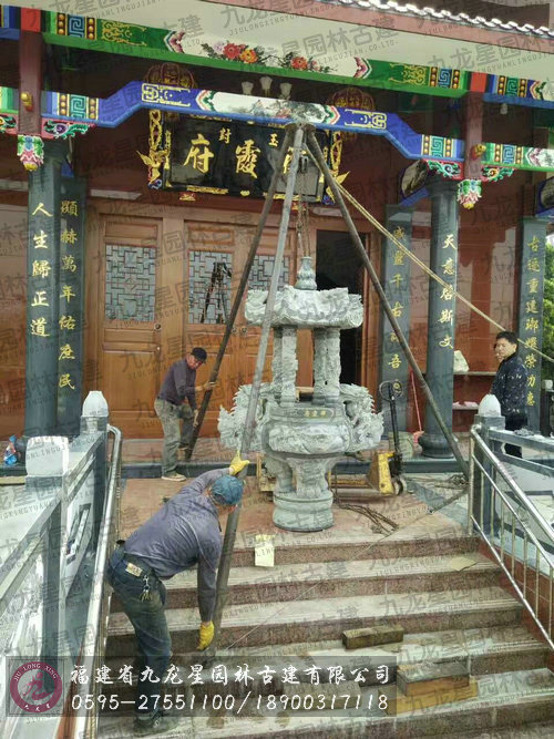 福州禪霞府青石香爐獅子仿古石桌椅安裝完畢
