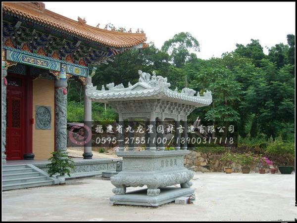 石雕香爐采用優質青石精雕細琢而成的,香爐兩邊的龍栩栩如生。香爐一般用來盛載香支,以作日常供奉神明之用。首先,石雕香爐不能對著門墻,最好是正對著大門的位置;二:香爐要擺在供奉的佛像前面,不能放在后面要擺放端正,不能歪歪斜斜的;三:有的人用香爐,為了防止香灰落到外面,在上面用了個蓮花狀的圍子,他的邊緣很薄很鋒利,如果它的高度正好對著你供神像腿腳部位,這是大忌的。若你的神像遠遠要高于它,那么問題不大,佛壇也好神壇也好,要常常保持干凈,尤其香爐口邊也要隨時保持干凈。