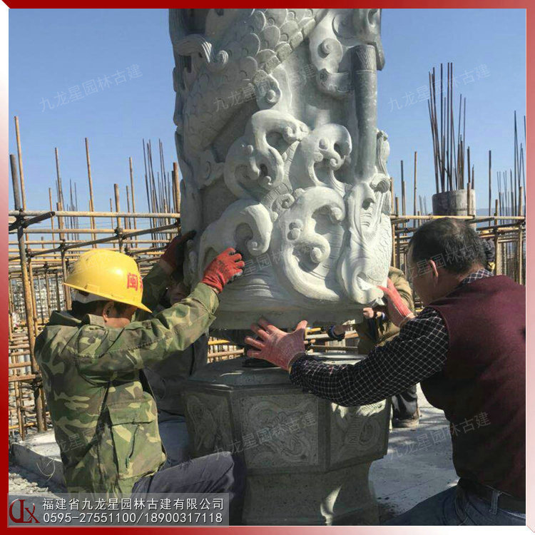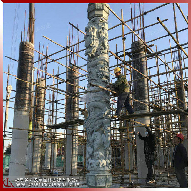 青石雕龍柱,是由天然青石雕刻制作的石雕龍柱,寺廟用在裝飾的石雕龍柱,通常會選青石雕龍柱。青石的顏色古香古色有著古韻的氣息,青石雕龍柱成品顏色莊嚴、肅穆、穩重,能夠很好的融入寺廟古建環境中,人們經常看到青石加工而成的龍柱覺得很有懷舊的感覺。