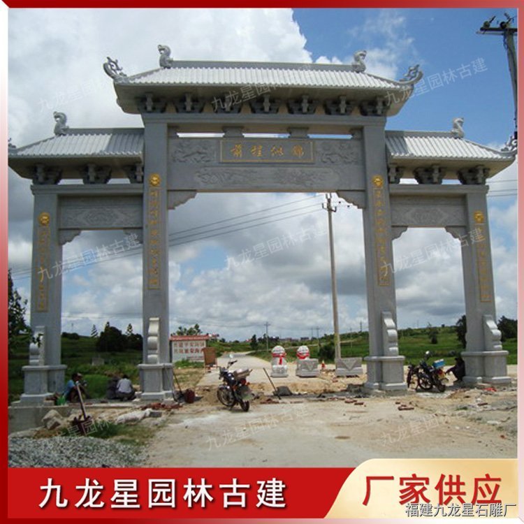 農(nóng)村石雕牌坊常見是用青石、花崗巖制作加工,經(jīng)過石雕牌坊訂制公司精心雕刻而成。石牌坊多樣的外觀形態(tài),豐富的文化內(nèi)涵,使得村石石雕牌坊成為新農(nóng)村建設(shè)的標(biāo)志性建筑。